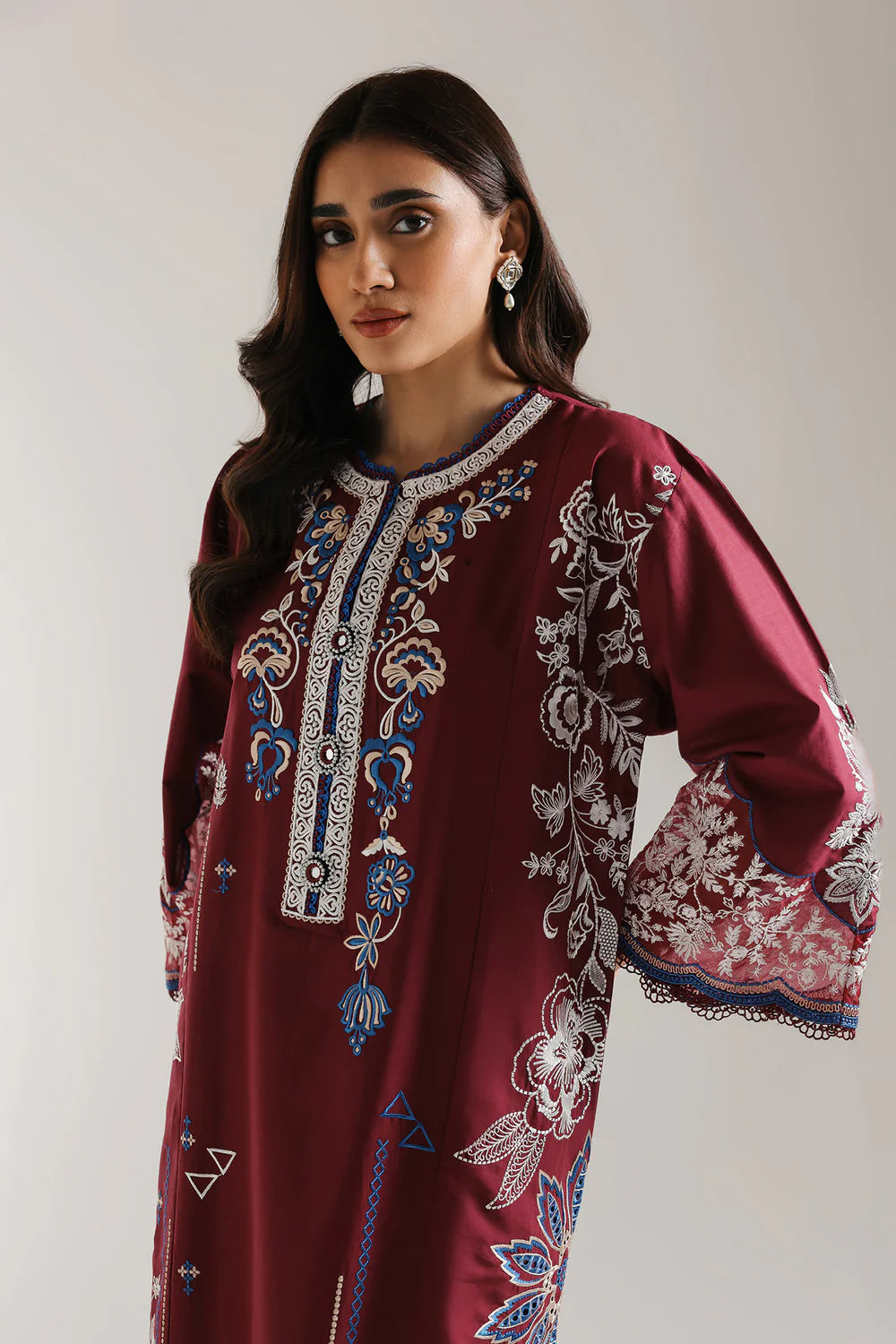 Immerse yourself in the serene beauty of this cloudy violet ensemble. The soft, muted hue of the fabric creates a calming and elegant backdrop for the intricate embroidery. Delicate floral and geometric motifs in complementary shades adorn the shirt, adding a touch of refined artistry. The relaxed silhouette and flowing fabric ensure comfort and graceful movement. This outfit is a celebration of subtle sophistication and timeless style, perfect for adding a touch of understated luxury to any occasion.