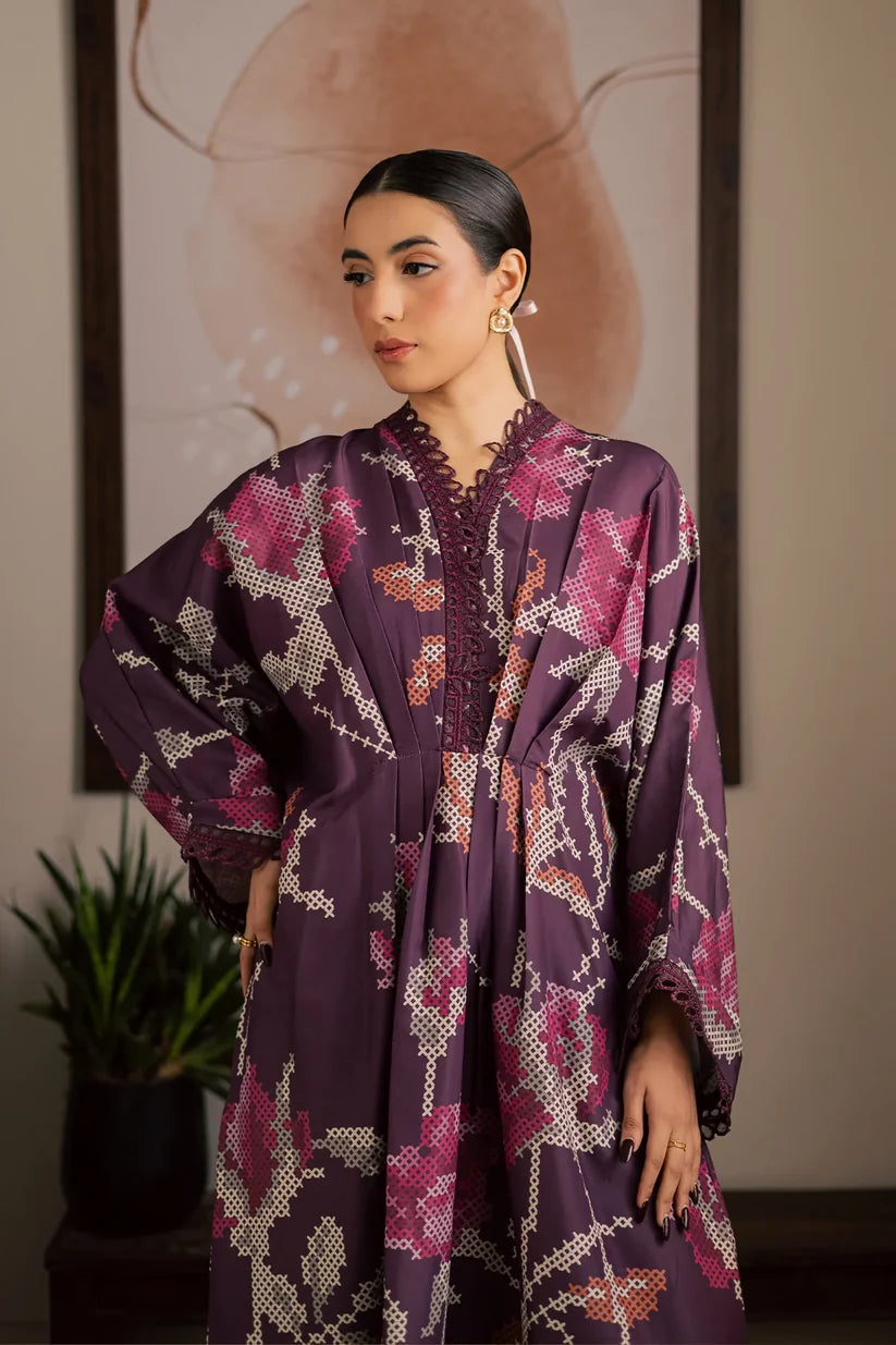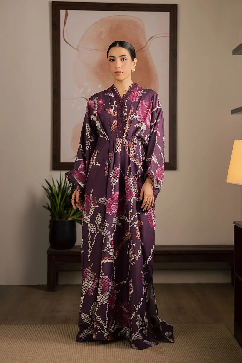 Embroidered and printed lawn silk kaftan