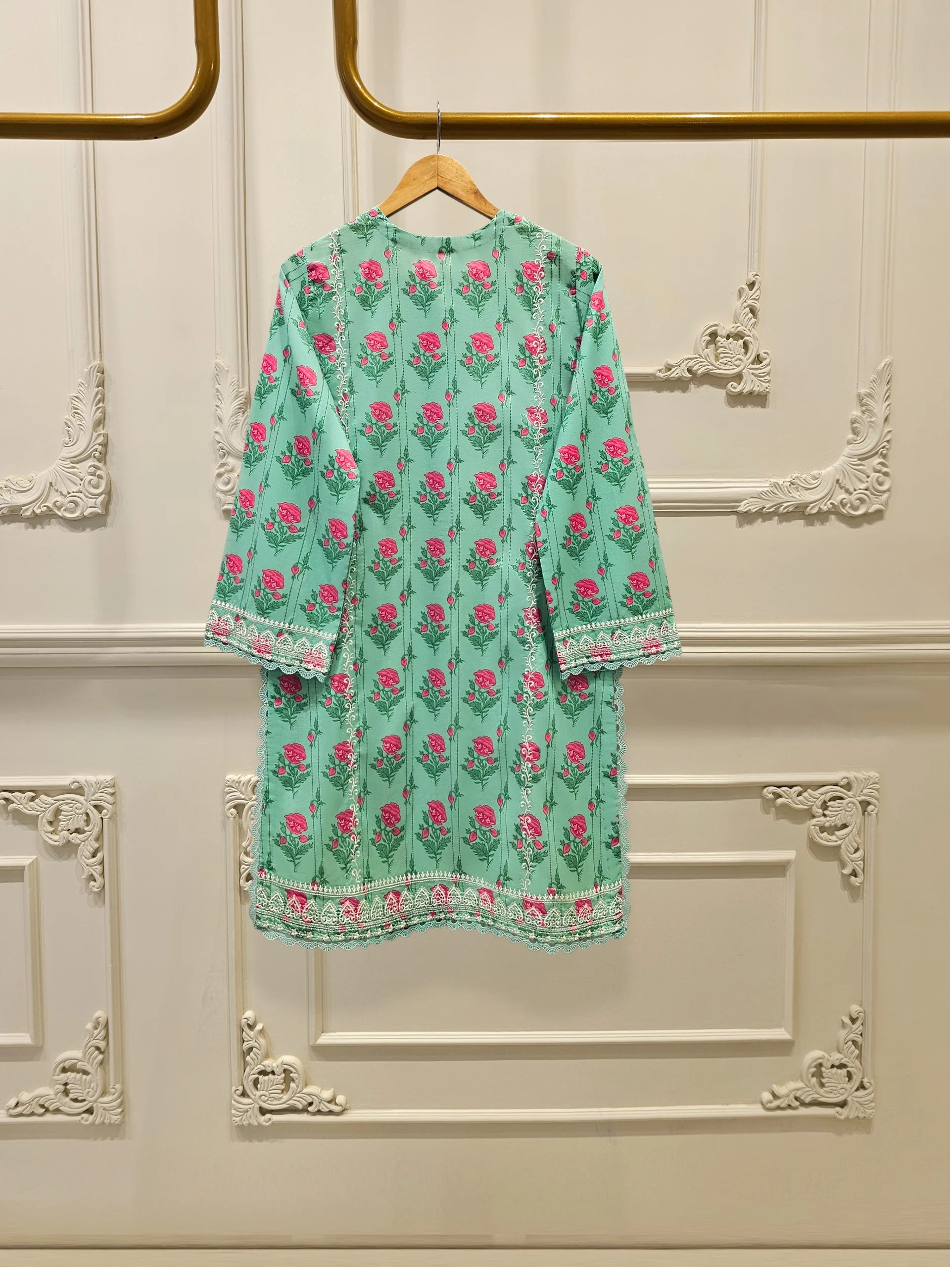one Pc- Introducing our vibrant and fashionable lawn shirt perfect for adding a touch of elegance and style to your wardrobe. Made from high-quality lawn fabric, this shirt offers comfort and breathability, making it an ideal choice.