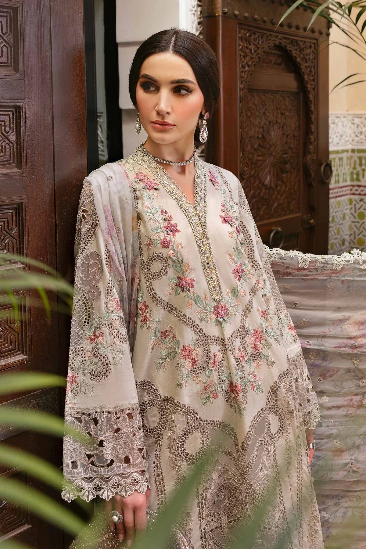 Embroidered Lawn Neck Left With Ribbon Flowers