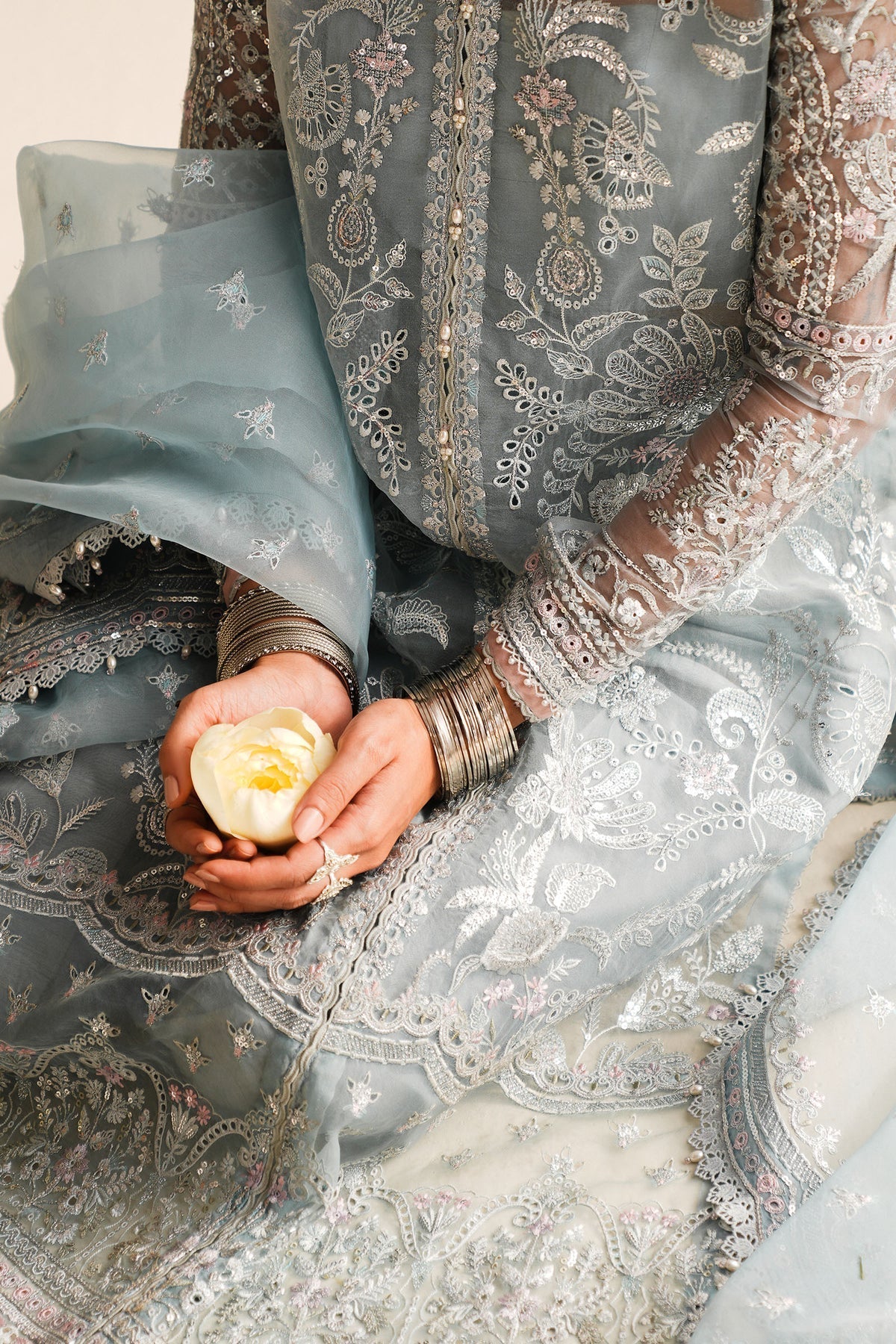 Embroidered Sleeves (Poly Organza) 0.7 Meters