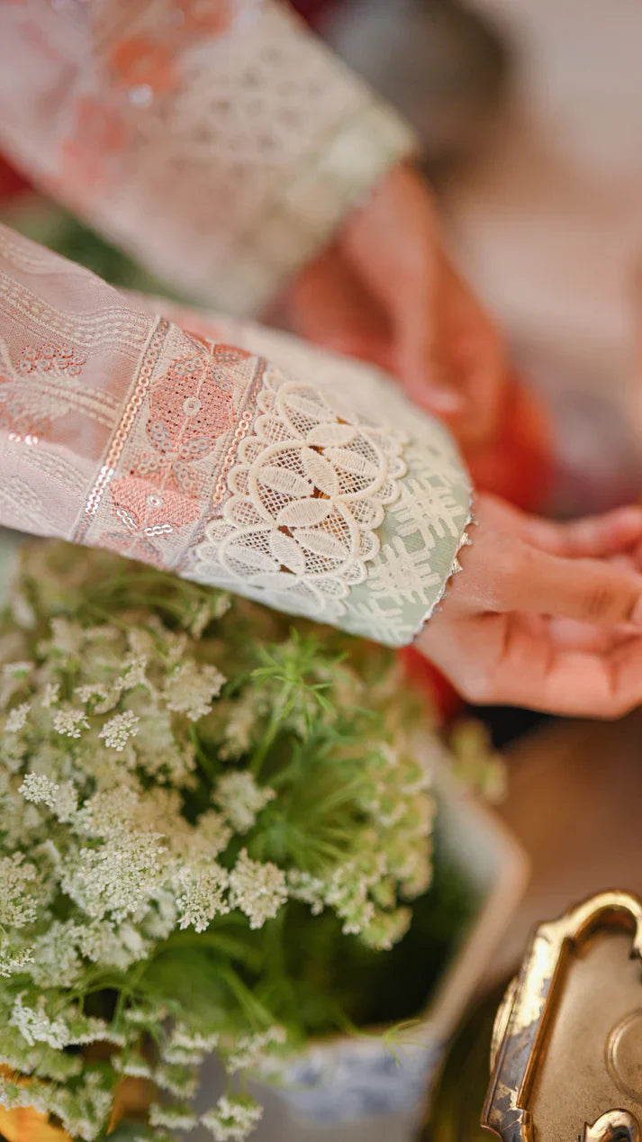 Our Resplended Pale Pink Sequenced Kurta is a mesmerizing blend of tradition and contemporary style. Intricate floral embroidery graces the verdant green fabric, complemented by white geometrical blockprint along the neckline. The distinctive damaan features dual tonality, while a border adorned with pink blockprint and silver accents adds a touch of sophisticated elegance.